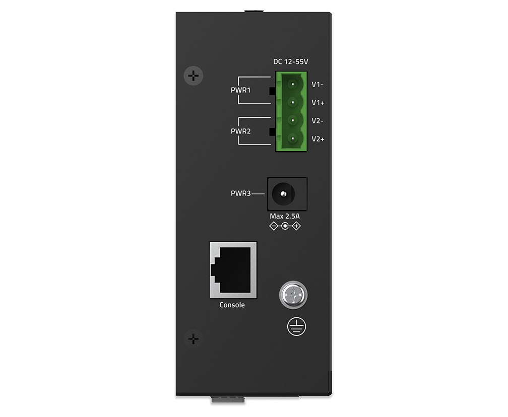 • DC: клеммный блок для подключения до двух независимых источников питания1 (от 12 В до 55 В DC)