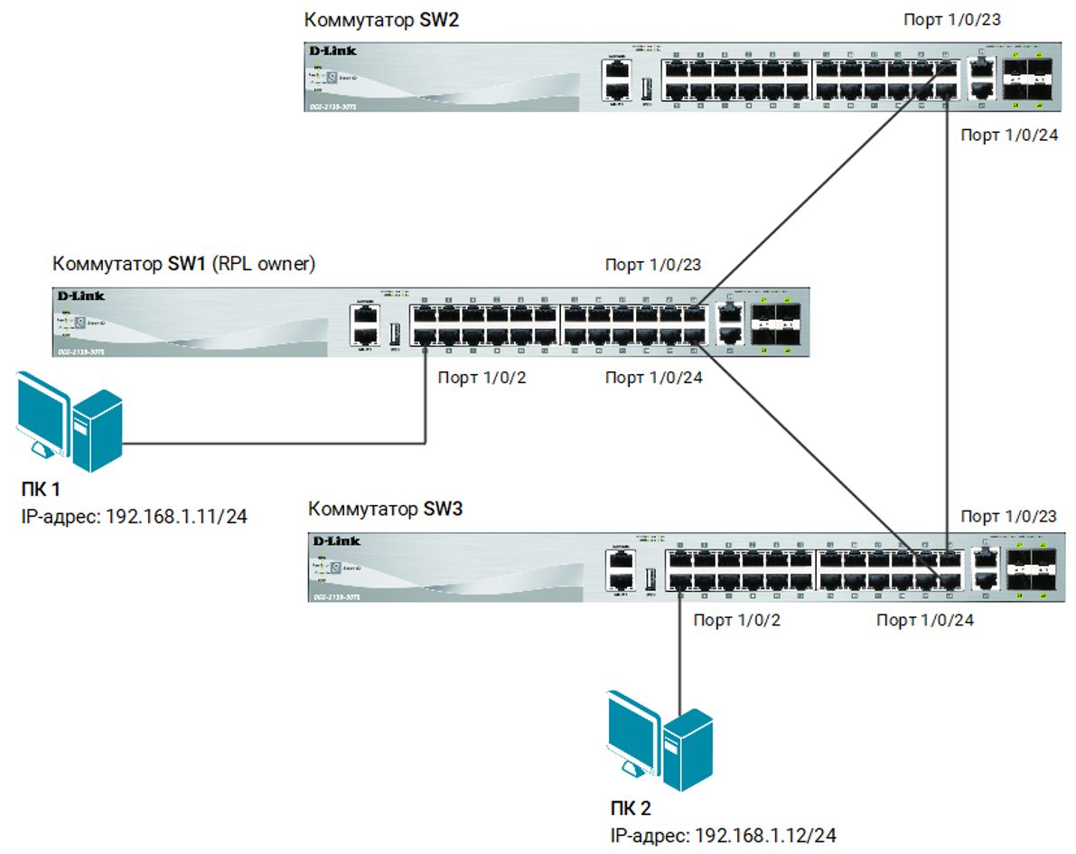 - Настройте коммутатор SW1 в качестве RPL owner, порт 1/0/23 как порт RPL: