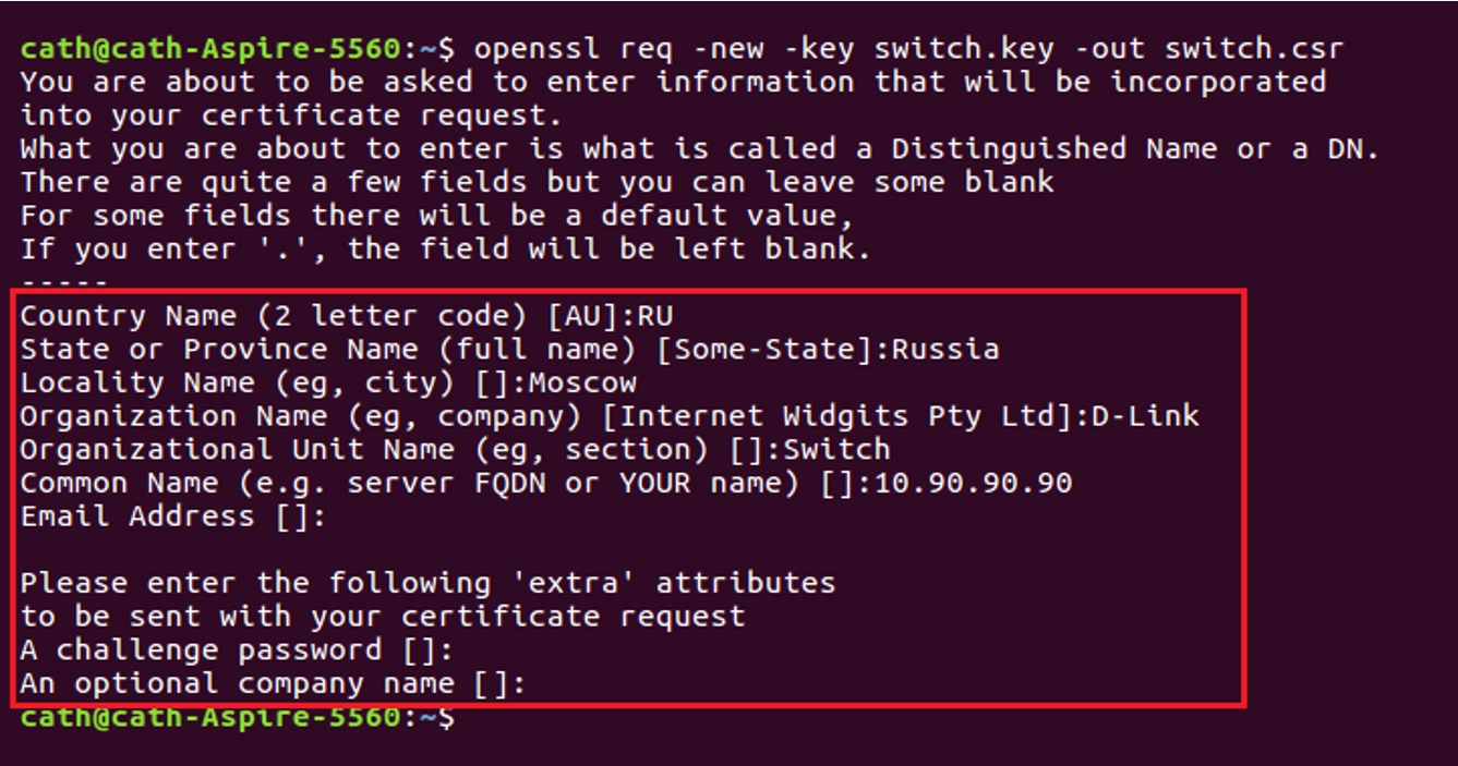 Закрытым ключом rootCA.key в дальнейшем будет подписан пользовательский сертификат, который нужно загрузить на коммутатор.