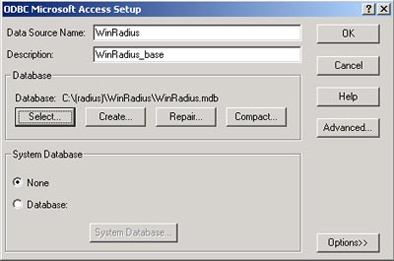 Для работы нашего RADIUS'а с БД MSAccess (файл базы данных есть в дистрибутиве WinRADIUS - WinRadius.mdb).