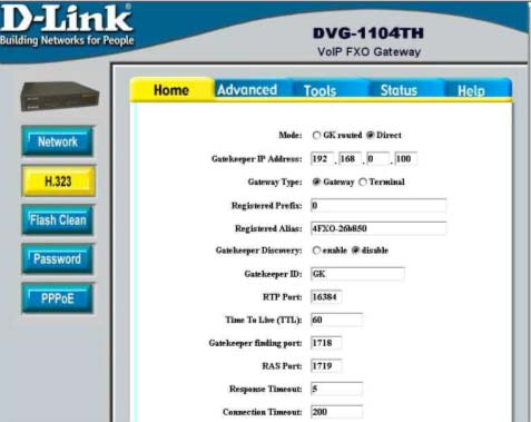 Для этого, следует зайти через WEB интерфейс на вкладку HOME->H.323