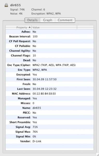 В процессе эксперимента, DIR-655 и ноутбук находилились в одном  помещении. Результаты эксперимента отображались штатными средствами операционной системы ноутбука и показали соместимость его WiFi-адаптера с DIR-655 по престандарту 802.11n Draft 2.