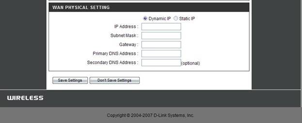 Valige Dynamic IP.