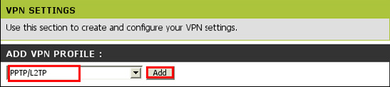 Väljal Add VPN Profile valige PPTP/L2TP ja vajutage nuppu add.