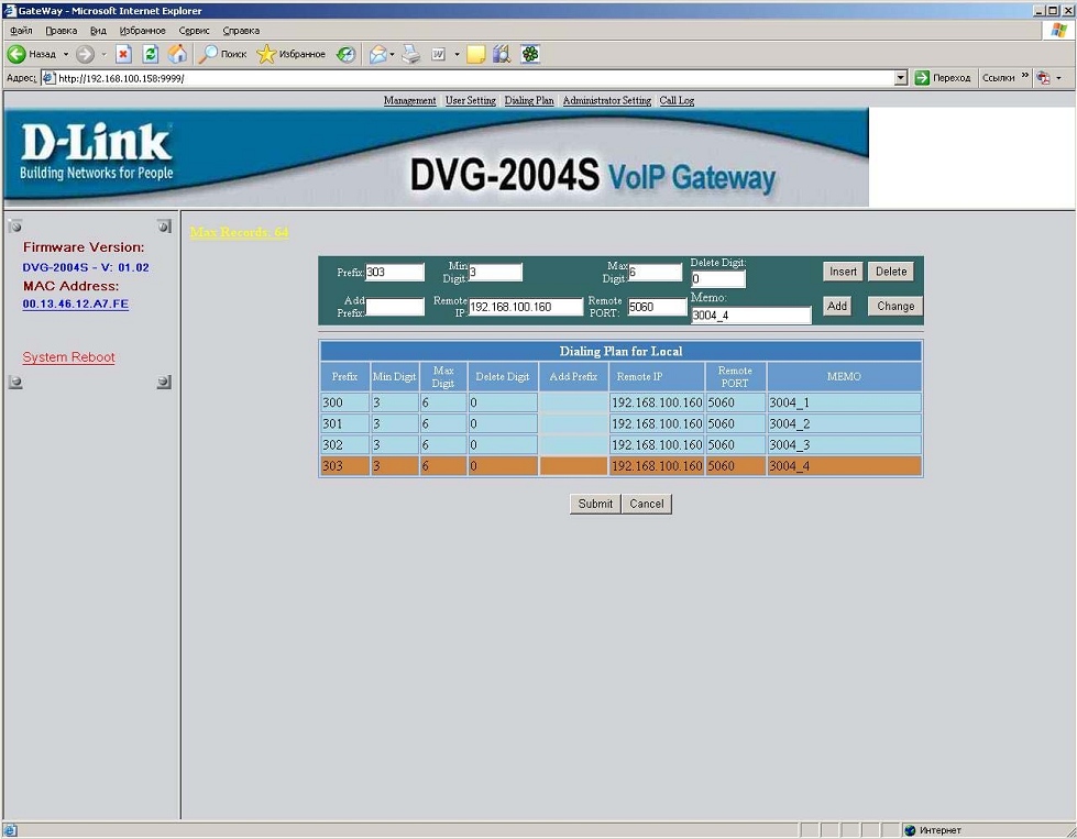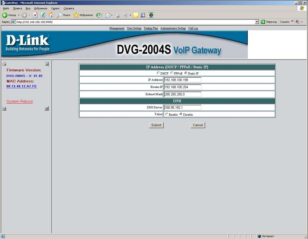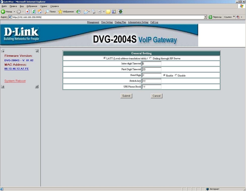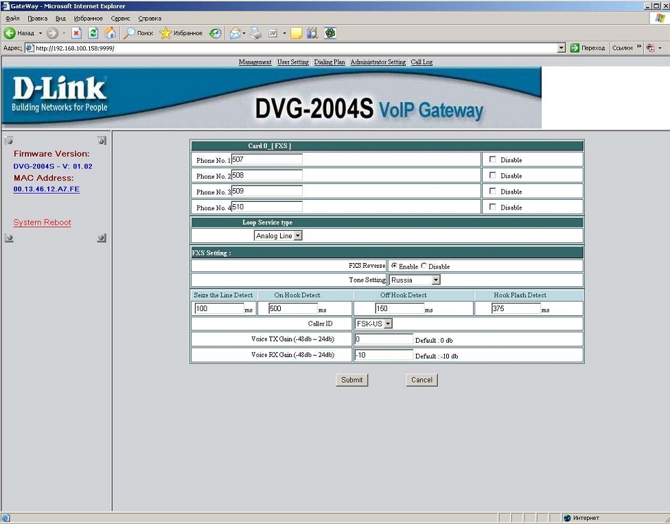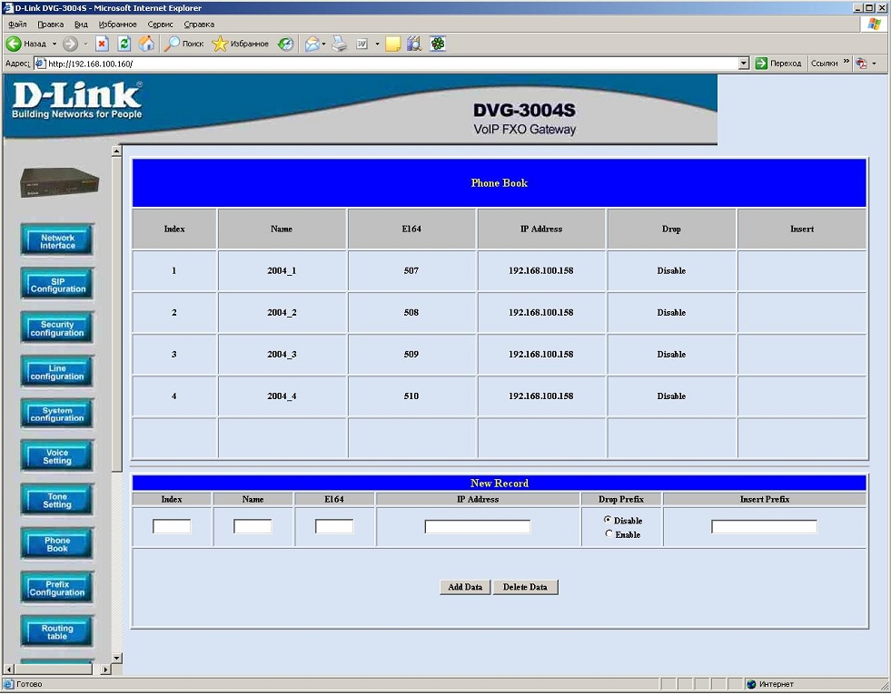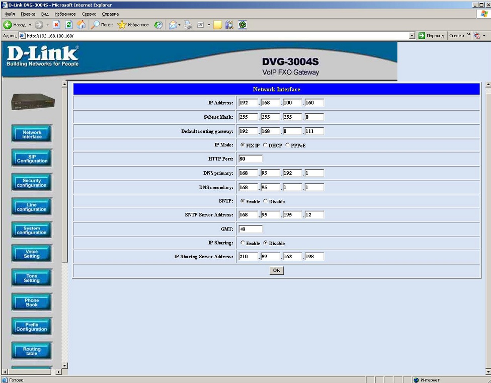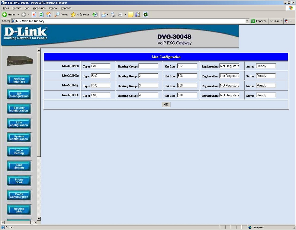 2. Настройка DVG-2004S