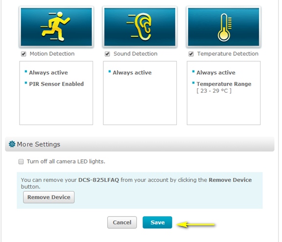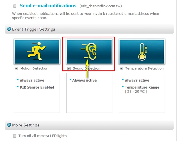 Jautājums: Как настроить функцию обнаружения звука на камере DCS-825L, используя сервис mydlink?