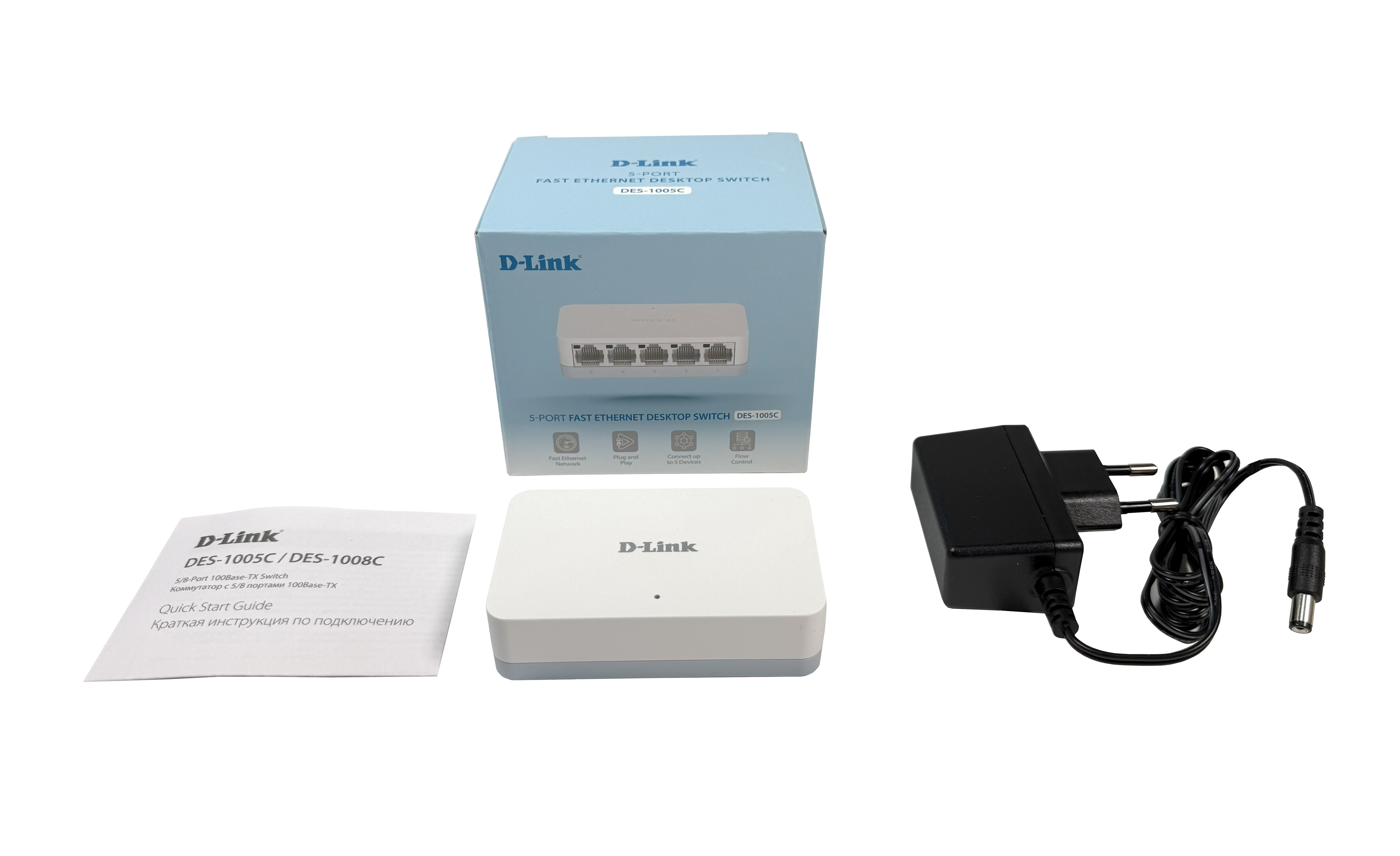 The DES-1005C 5-Port SOHO Desktop Switch is economical, plug-and-play networking switch solution for SOHO and small to medium businesses. It provides five 10/100 Mbps ports, enabling you to easily expand your network and quickly upgrade your connectivity.