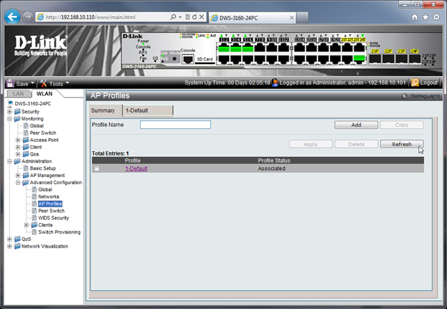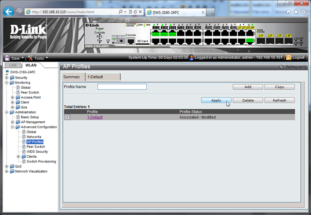 В списке AP Profiles в столбце информации о состоянии изменённого профиля видим его статус «Associated - Modified».