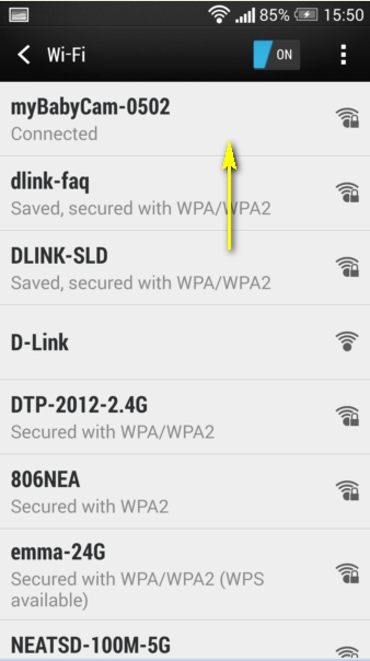 Шаг 3: Подключитесь к беспроводной сети видеокамеры. Имя беспроводной сети и пароль указаны на этикетке на основании устройства.