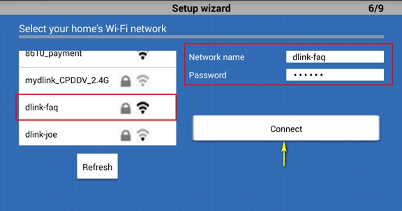 Шаг 10: Выберите домашнюю сеть Wi-Fi к которой необходимо подключиться из представленного списка и введите пароль для беспроводной сети в поле Password (Пароль). Также можно вручную ввести имя сети, к которой необходимо подключиться, в поле Network Name (Имя сети). Коснитесь значка Connect (Подключиться).