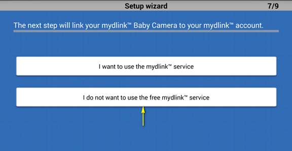 B. Если Вы не хотите регистрировать камеру на портале mydlink, коснитесь I do not want to use the free mydlink™ service (Я не хочу использовать сервис mydlink™). Пожалуйста, помните, что без регистрации в mydlink Вы не сможете удаленно просматривать видео с камеры.