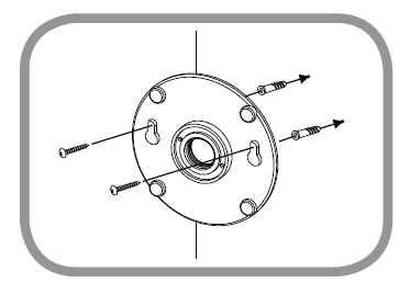 Шаг 1: Поместите входящее в комплект поставки основание на место, где планируется установить камеру, и разметьте карандашом отверстия для монтажа. Используйте сверло 6 мм, чтобы просверлить два отверстия, глубиной не менее 30 мм. С помощью молотка вставьте анкеры в отверстия. Поместите основание поверх отверстий, сделанных в стене. Убедитесь, что отверстия основания совпадают с отверстиями в стене, и, используя винты, прикрепите основание к стене.