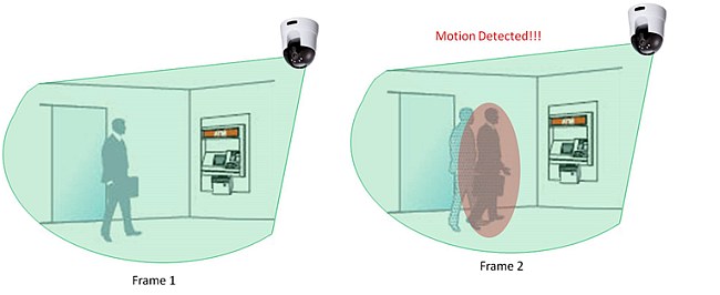 1. Программный детектор движения, срабатывающий при изменении определенного количества пикселей: камера выполняет сравнение количества пикселей на изображениях от кадра к кадру.