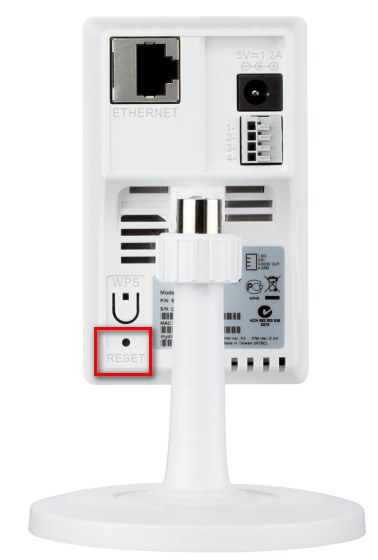 Примечание: После сброса к заводским настройкам необходимо повторно зарегистрировать камеру в mydlink. Не выключайте питание во время процедуры сброса.