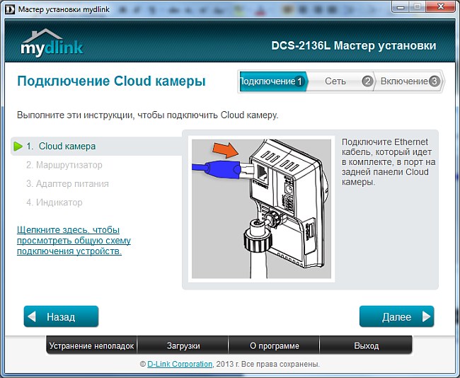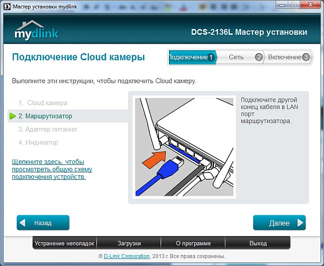 Шаг 2.3: Следуйте инструкциям на экране, чтобы подключить камеру к маршрутизатору и подключить питание. Нажимайте Далее после завершения каждого шага.
