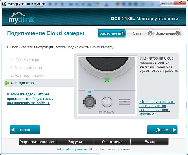 Шаг 2.4: Подтвердите, что индикатор на передней панели камеры постоянно горит зеленым цветом.