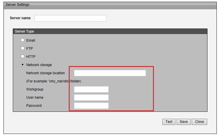 Шаг 5. Для создания сервера для записи видео установите переключатель в положение Network Storage и заполните следующие поля: