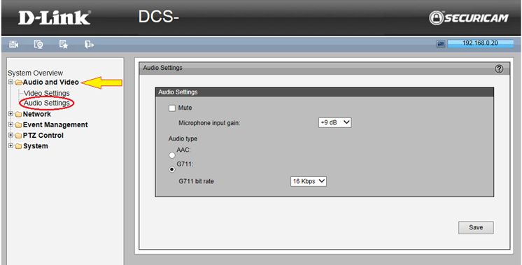 Вопрос: Как выполнить настройки аудио (микрофон) на камере DCS-3010?