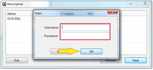 Шаг 2. Введите имя пользователя и пароль для камеры и нажмите OK.
