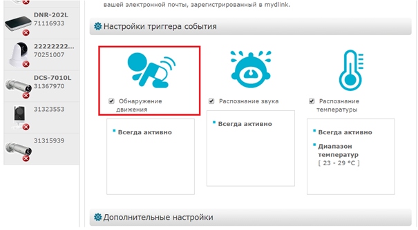 Вопрос: Как настроить функцию обнаружения движения на камере DCS-855L, используя сервис mydlink?