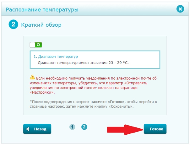 Шаг 6: Нажмите Готово, чтобы подтвердить настройки распознания температуры.