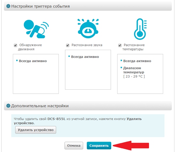 Вопрос: Как настроить функцию определения температуры на камере DCS-855L, используя сервис mydlink?