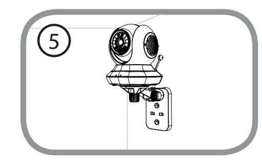 Шаг 5: Используя входящий в комплект поставки винт, прикрепите камеру к кронштейну. Подключите кабель питания к камере.