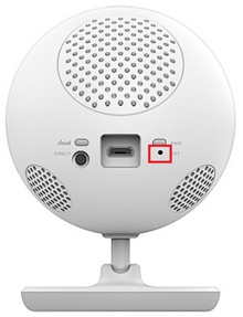 Шаг 1: Не выключая питание устройства, с помощью разогнутой скрепки нажмите кнопку RST (сброс) на задней панели камеры.