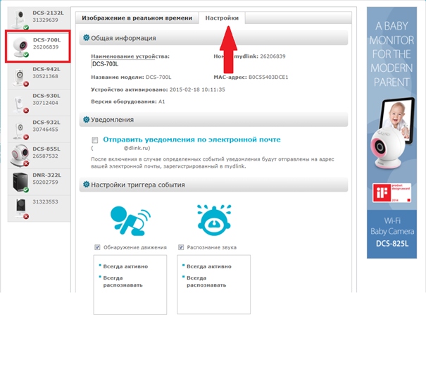 Вопрос: Как настроить функцию обнаружения движения на камере DCS-700L, используя сервис mydlink?