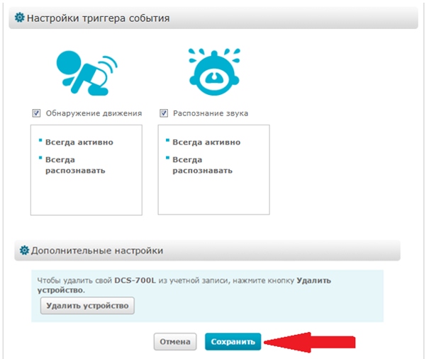 Вопрос: Как настроить функцию обнаружения звука на камере DCS-700L, используя сервис mydlink?