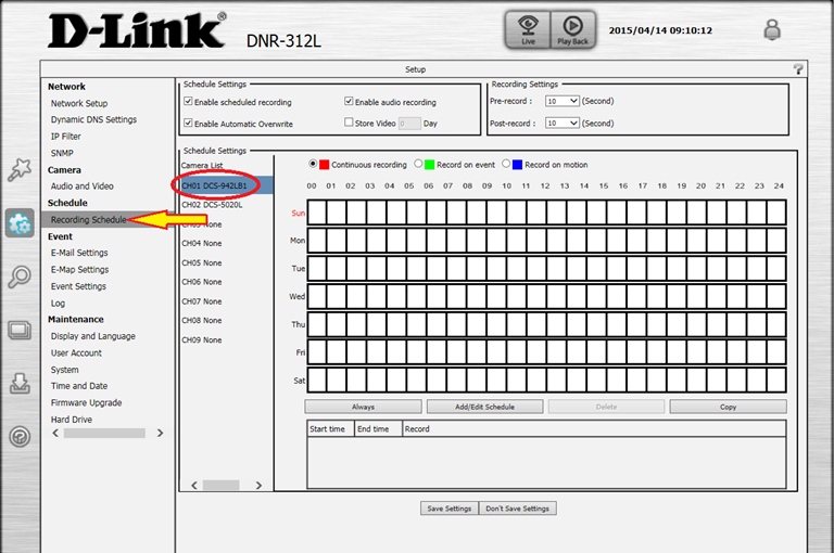 Вопрос: Как настроить постоянную запись в сетевом видеорегистраторе DNR-312L