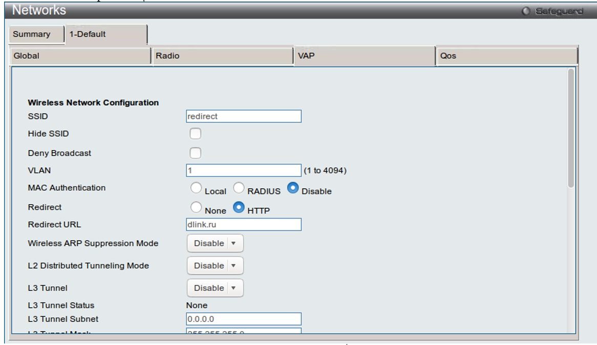 Кликаем на необходимый профиль (в этом случае Default), переходим во вкладку VAP.