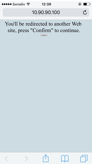 При нажатии на Confirm клиент перенаправляется на заданную ранее страницу (dlink.ru). Последующие запросы клиента перенаправляться не будут.