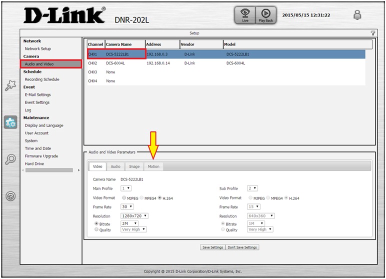 Шаг 4: Перейдите в раздел Audio and Video (Аудио и видео). Справа выберите необходимую камеру, после чего откройте вкладку Motion (Движение)