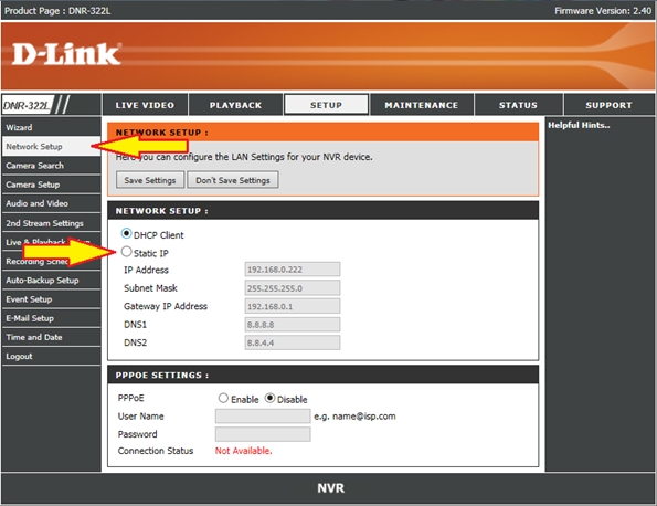 Шаг 4. Выберите раздел Network Setup (Сетевые настройки) в меню слева и нажмите "Static IP" (Статический IP-адрес).