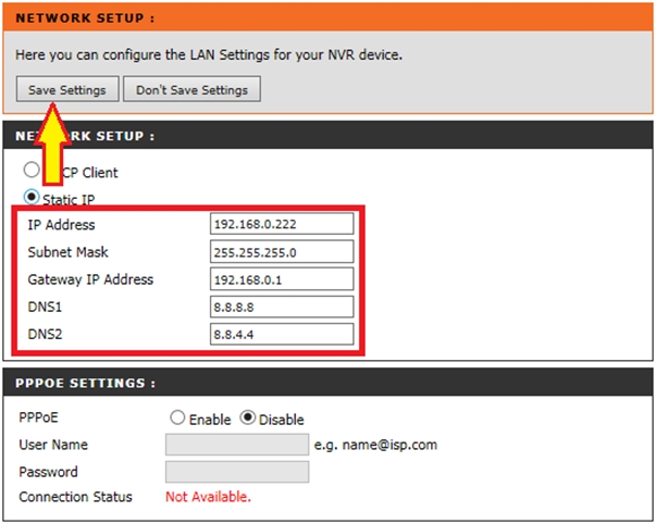 Шаг 5. Введите требуемый IP-адрес регистратора и нажмите кнопку Save Settings (Сохранить настройки).