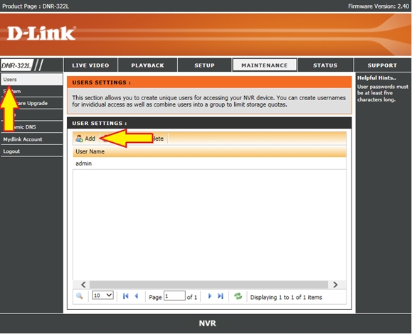 Вопрос: Как добавить пользователя в сетевом видеорегистраторе DNR-322L