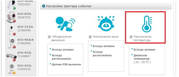 Вопрос: Как настроить функцию определения температуры на камере DCS-850L, используя сервис mydlink?