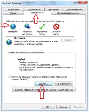 Шаг 3: Нажмите на вкладку Безопасность, выберите Интернет, затем нажмите кнопку Другой…