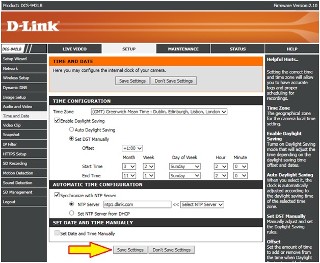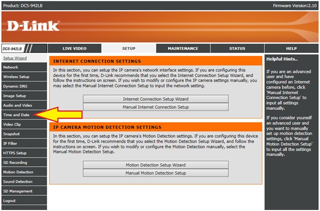Вопрос: Как выполнить настройку даты и времени на камере DCS-942L?
