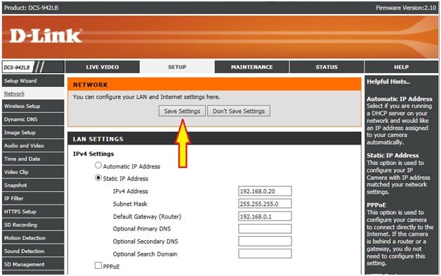 Шаг 6: Нажмите кнопку Save Settings (Сохранить настройки), чтобы сохранить новые настройки.