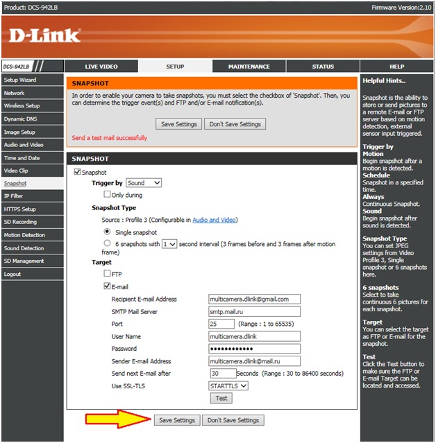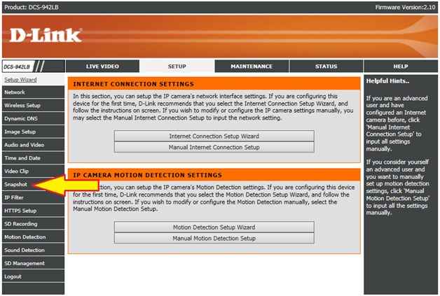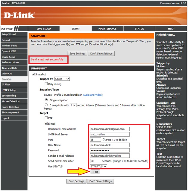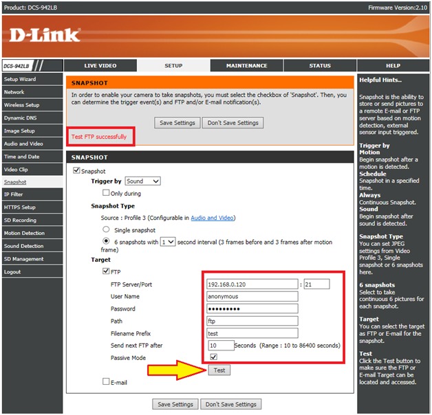 Вопрос: Как настроить отправку снимков на FTP сервер и электронную почту на камере DCS-942L?