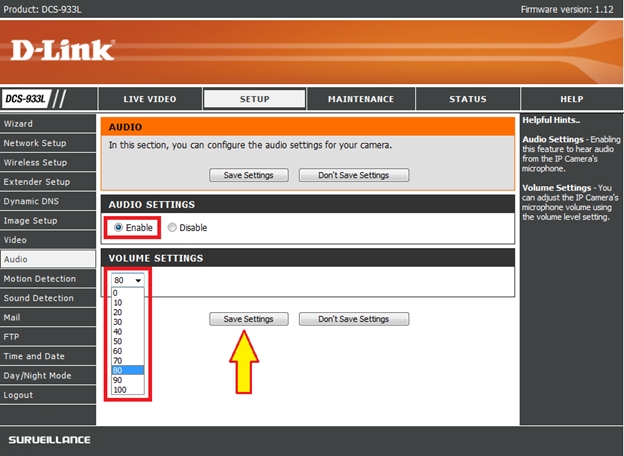Вопрос: Как выполнить настройку микрофона на камере DCS-933L?