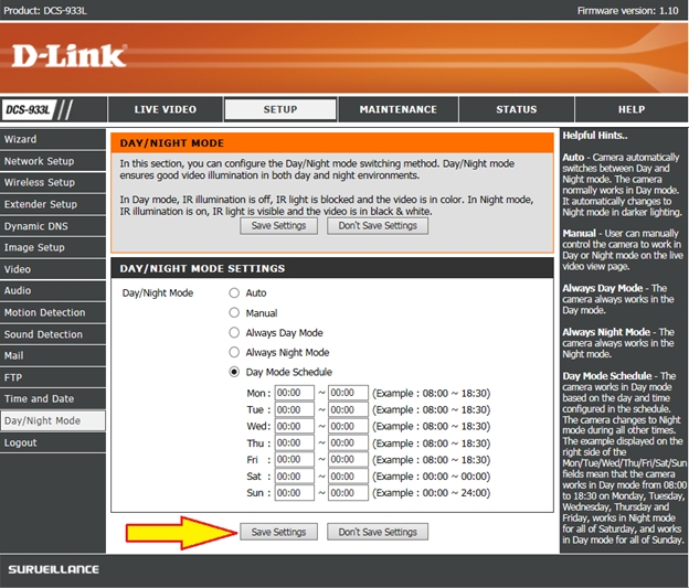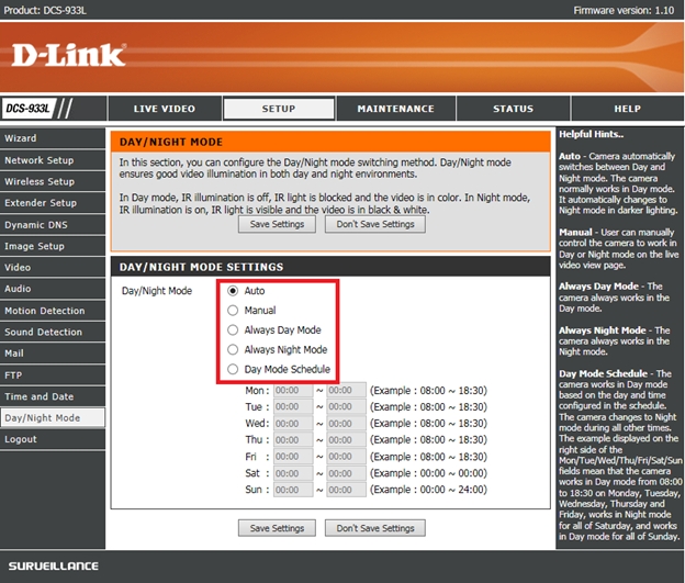 Вопрос: Как настроить режим День/Ночь на камере DCS-933L?