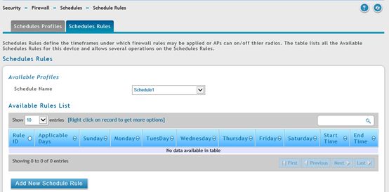 - Перейти в меню Security → Firewall → Schedules → Schedule Rules