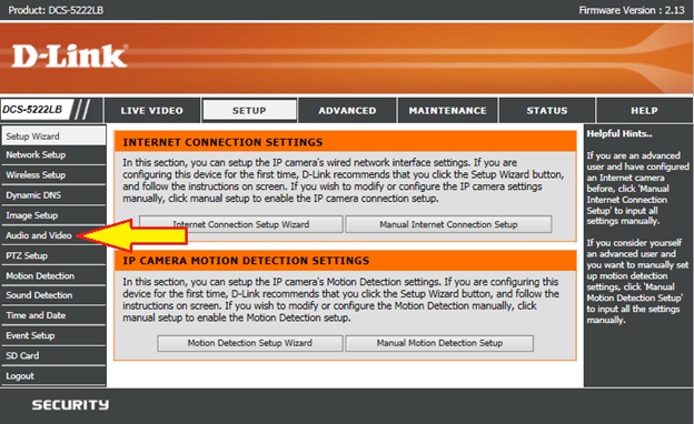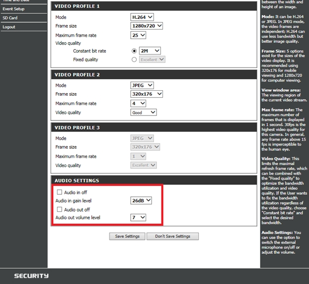 Вопрос: Как выполнить настройку микрофона и динамика на камере DCS-5222LB?