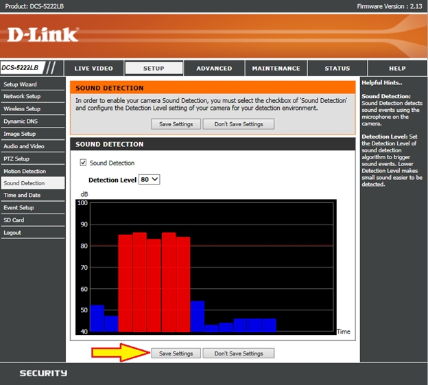 Шаг 5: Поставьте флажок в поле Sound Detection, чтобы включить программное обнаружение звука.