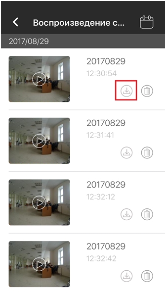 - Для удаления видеоклипа с SD-карты нажмите соответствующий значок рядом с видеоклипом.