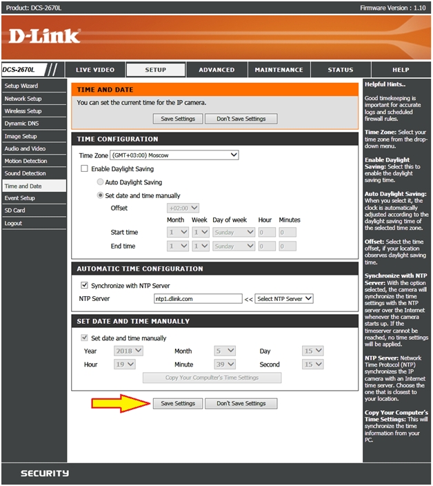 Примечание: обратите внимание, что при отключении питания устройства настройки даты и времени будут сброшены. Поэтому настоятельно рекомендуется использовать функцию синхронизации с NTP-сервером для автоматической настройки даты и времени.
