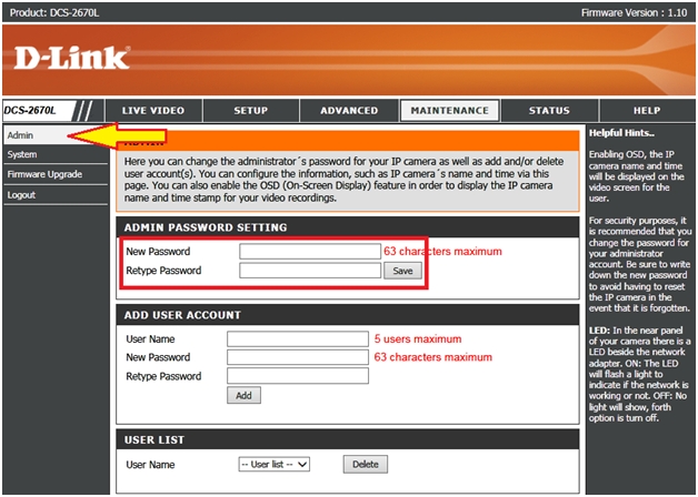 Вопрос: Как задать пароль администратора на камере DCS-2670L?